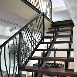 Our stair railings combine safety and style, built to handle a 200-pound load as required by California code. Choose from wrought iron, glass, or modern designs to match your home.